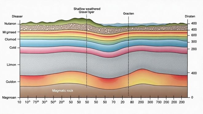 地质剖面图是将地表以下一定深度的地质构造(如地层、褶皱、断层、侵入体等)及其相互关系,按照一定比例尺,沿某一方向(通常是垂直于构造走向的方向)切割并垂直投影到图纸上形成的图件。它揭示了地下的地质结构,是理解区域地质历史和构造运动的关键。