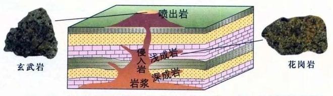 (2)喷出岩体:如玄武岩流,覆盖在原有地层之上,与下伏地层为沉积接触(喷出岩作为基底)或喷发不整合。可能有气孔、流纹构造。